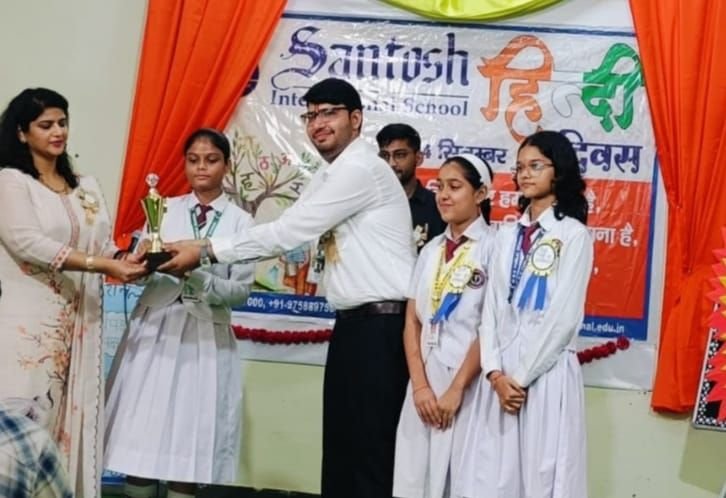 📰✍️ संतोष इंटरनेशनल स्कूल में हिंदी दिवस के उपलक्ष्य में अंतर विद्यालय वाद विवाद प्रतियोगिता का हुआ आयोजन।
