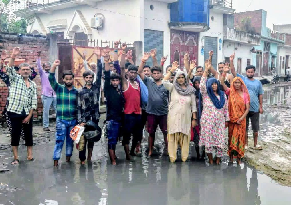 📰✍️ औरंगाबाद क्षेत्र के मौहल्ला नई वस्ती में स्थित माता पथवारी मंदिर के निकट जलभराव को लेकर भड़के मोहल्लेवासी; नगर पंचायत प्रशासन के खिलाफ किया जोरदार हंगामा, बारिश और तालाब का गंदा पानी सड़क मार्ग पर भरने से मोहल्ले वासियों का वहां से पैदल निकलना भी हो गया है मुश्किल। जलभराव की समस्या को लेकर वार्ड सभासद गौरव लोधी के नेतृत्व में आज दर्जनों मोहल्ले वासियों ने जलभराव स्थल पर पहुंचकर नगर पंचायत प्रशासन के खिलाफ जमकर नारेबाजी करते हुए  किया हंगामा।