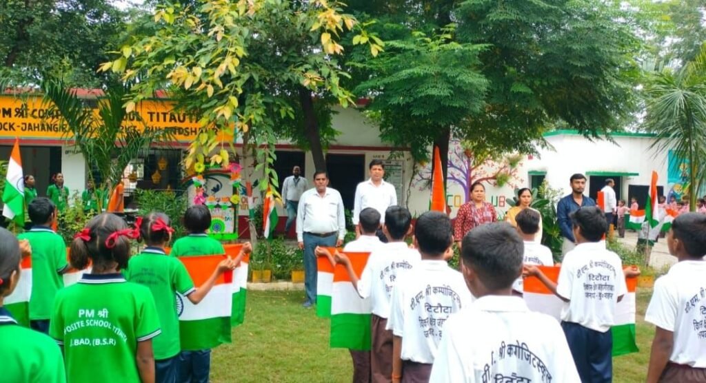 ➡️ बेसिक शिक्षा विभाग की पहल के तहत संचालित समस्त प्राथमिक, उच्च प्राथमिक, कंपोजिट, सहायता प्राप्त विद्यालयों में एक साथ एक समय पर वंदे मातरम् सामूहिक गायन को 173741 छात्र छात्रा व अध्यापकों द्वारा बड़े उत्साह के साथ किया गया संपन्न। बीएसए लक्ष्मी कांत ने बताया कि यह कार्यक्रम आजादी का अमृत महोत्सव एवं हर घर तिरंगा अभियान के अंतर्गत किया गया आयोजित, जिसका उद्देश्य विद्यार्थियों में राष्ट्रभक्ति की भावना को प्रबल करना और राष्ट्रीय ध्वज के प्रति सम्मान का भाव जगाना था।