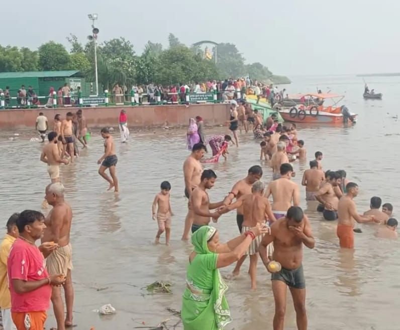 4.📰✍️शनि अमावस्या पर छोटी काशी अनूपशहर सहित जनपद के सभी गंगा घाटों पर श्रद्धालुओं की उमड़ी भीड़; गंगा का जलस्तर बढ़ा होने के बावजूद हजारों श्रद्धालुओं ने किया स्नान, इस दिन पितृ तर्पण और शनिदेव की पूजा का माना जाता है विशेष महत्व, मान्यता है कि इस दिन किए गए तर्पण और श्राद्ध से पितृ दोष और शनि दोष से मिलती है मुक्ति।