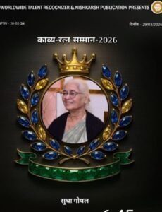 📰✍️बुलंदशहर की साहित्यकार सुधा गोयल को ‘काव्य-रत्न सम्मान 2026’; सुधा गोयल को Worldwide Talent Recognizer व Nishkarsh Publication ने ‘काव्य-रत्न सम्मान’ से किया सम्मानित, कविता, उपन्यास, कहानी, संस्मरण, लघुकथा व बाल साहित्य में सक्रिय योगदान के लिए मिली पहचान, पूर्व में भी कई पुरस्कारों से हो चुकीं है सम्मानित।