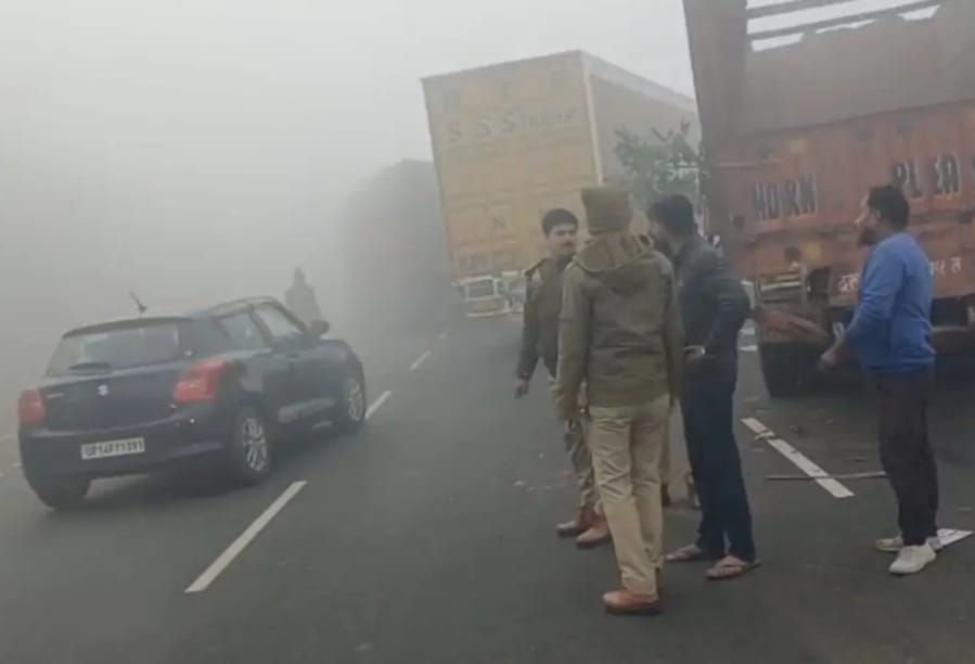1.📰✍️घने कोहरे में खुर्जा बाइपास पर तीन वाहनों की भीषण भिड़ंत, कैंटर-टैंकर-पिकअप टकराए, दो यात्री घायल।