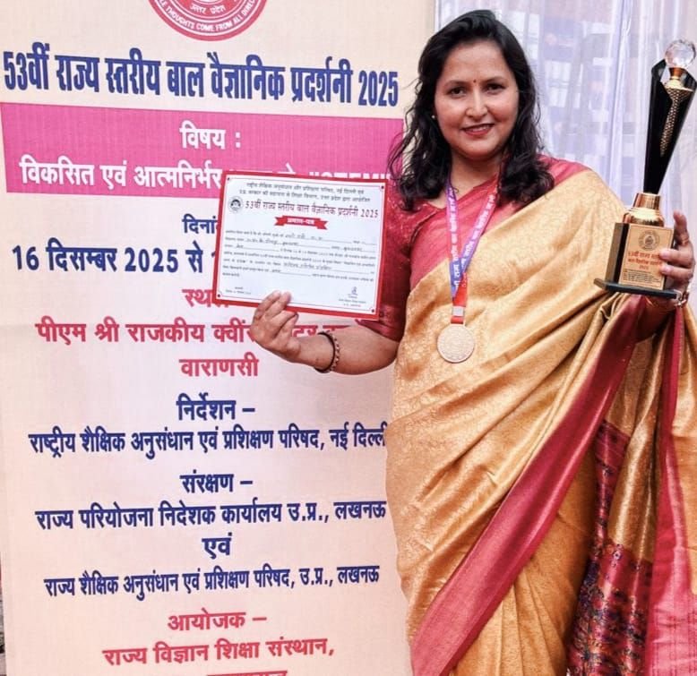 5.📰✍️ बुलंदशहर की शिक्षिका ने बढ़ाया जिले और मंडल का मान, राज्य स्तरीय बाल विज्ञान प्रदर्शनी में शिक्षिका शशि राठी अव्वल; वाराणसी में 16 से 19 दिसंबर तक आयोजित 53वीं राज्य स्तरीय बाल विज्ञान प्रदर्शनी में बुलंदशहर की शिक्षिका शशि राठी ने अध्यापक वर्ग में मेरठ मंडल का प्रतिनिधित्व करते हुए प्रथम स्थान किया हासिल, उनके प्रोजेक्ट “मनोरंजक गणितीय मॉडलिंग” को निर्णायकों और एनसीईआरटी टीम ने सराहा, उपलब्धि से शिक्षा विभाग में हर्ष का माहौल।