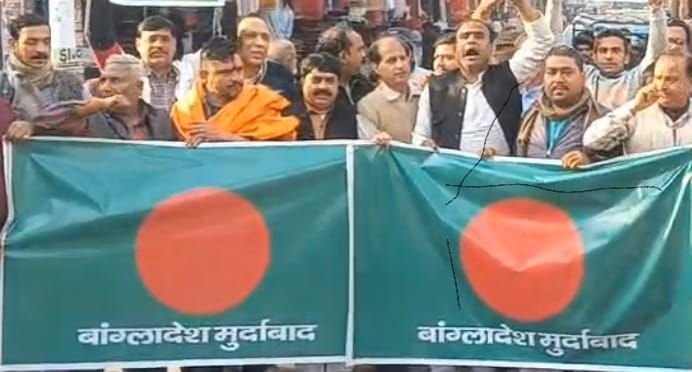 4.📰✍️बांग्लादेश में हुई हिंदू अल्पसंख्यक दीपू चंद दास की हत्या के विरोध में जहांगीराबाद में प्रदर्शन; क्षेत्र के आर्य समाज मंदिर लाल कुआं से हिंदू समाज, व्यापार मंडल, बीजेपी, बजरंग दल व विहिप के लोगों ने नारेबाजी करते हुए किया प्रदर्शन, बांग्लादेश मुर्दाबाद की लगाए नारे, नगर कोतवाल संजेश कुमार को भारत सरकार के नाम सौंपा ज्ञापन।