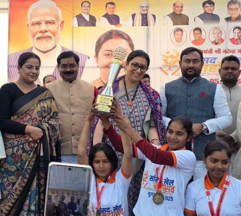 1.📰✍️ बुलंदशहर में सांसद खेल महोत्सव 2025 का समापन, स्मृति ईरानी रहीं मुख्य अतिथि; जहांगीराबाद के खालौर स्टेडियम में आयोजित हुआ समापन कार्यक्रम, भाजपा जिलाध्यक्ष विकास चौहान ने की कार्यक्रम की अध्यक्षता, पीएम नरेंद्र मोदी ने वर्चुअल संदेश के जरिए खिलाड़ियों का किया उत्साहवर्धन, सांसद डॉ. भोला सिंह ने ग्रामीण प्रतिभाओं को आगे बढ़ाने की कही बात, अंत में विजेता खिलाड़ियों को किया गया सम्मानित।