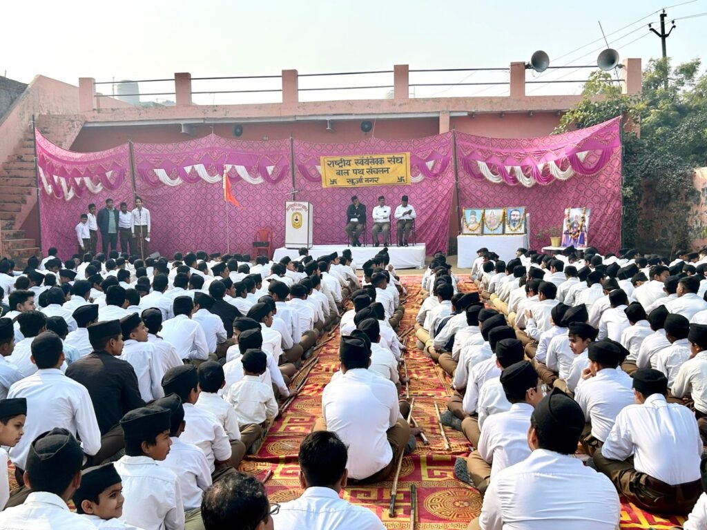 📰✍️ खुर्जा में आरएसएस द्वारा बाल पथ संचलन, चार साहिबज़ादों के शौर्य-संस्कारों का दिया संदेश; सह प्रान्त प्रचारक मान आनंद ने दीप प्रज्वलन कर किया शुभारंभ। साहिबज़ादे अजीत सिंह, जुझार सिंह, जोरावर सिंह व फतेह सिंह के त्याग का स्मरण करते हुए गुरु तेग बहादुर जी के 350वें प्रकाश पर्व व बांग्लादेश में हिंदू युवक दीपू दास की हत्या पर संवेदना जताई गई, “वाहे गुरु जी का खालसा” के जयघोष के साथ संपन्न हुआ कार्यक्रम।