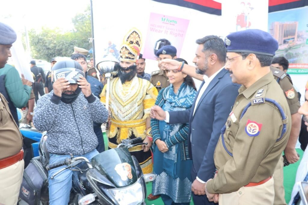 1.📰✍️ शहर के कालाआम चौराहे पर डीएम और एसएसपी ने बांटे दुपहिया वाहन चालकों को हेलमेट, यमराज की वेशभूषा में कलाकार ने सड़क सुरक्षा का दिया संदेश।