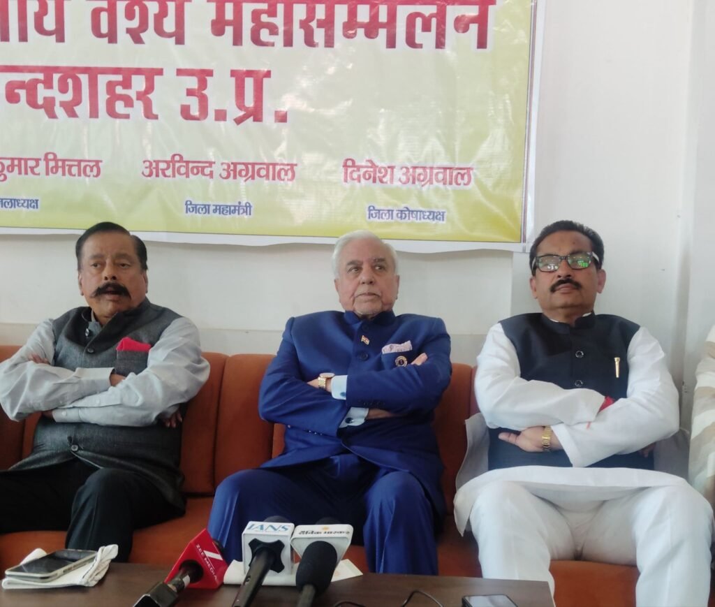 4.📰✍️बुलंदशहर में अखिल भारतीय वैश्य महासम्मेलन, बैठक में राष्ट्रीय अध्यक्ष व पूर्व सांसद गिरीश सांघी ने जाति नहीं वर्ण व्यवस्था पर एकजुटता की कही बात; मुख्य अतिथि सुभाष चंद्रा ने कहा वैश्य समाज ने देश की अर्थव्यवस्था, उद्योग और व्यापार को सशक्त बनाने में हमेशा निभाई है अहम भूमिका। इस दौरान जिलाध्यक्ष अमित मित्तल सहित जिला महामंत्री अरविंद अग्रवाल, कोषाध्यक्ष दिनेश अग्रवाल, नीरज अग्रवाल, नीरज जिंदल, बलराम चौकरात, विशाल बंसल और सुशील कंसल रहे मौजूद।