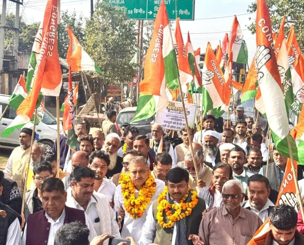 📰✍️बुलंदशहर में कांग्रेस की मनरेगा बचाओ यात्रा; जिला कांग्रेस कमेटी की मनरेगा बचाओ यात्रा ठंडी प्याऊ मामन खुर्द से शुरू होकर हात्माबाद व नीमखेड़ा सहित कई गांवों से गुजरी, जिलाध्यक्ष जियाउर्रहमान ने भाजपा पर मजदूर-गरीब विरोधी होने का लगाया आरोप, विशाल वशिष्ठ, सुभाष गांधी, भजनलाल विमल, प्रशांत बाल्मीकि ने सभा को संबोधित किया।
