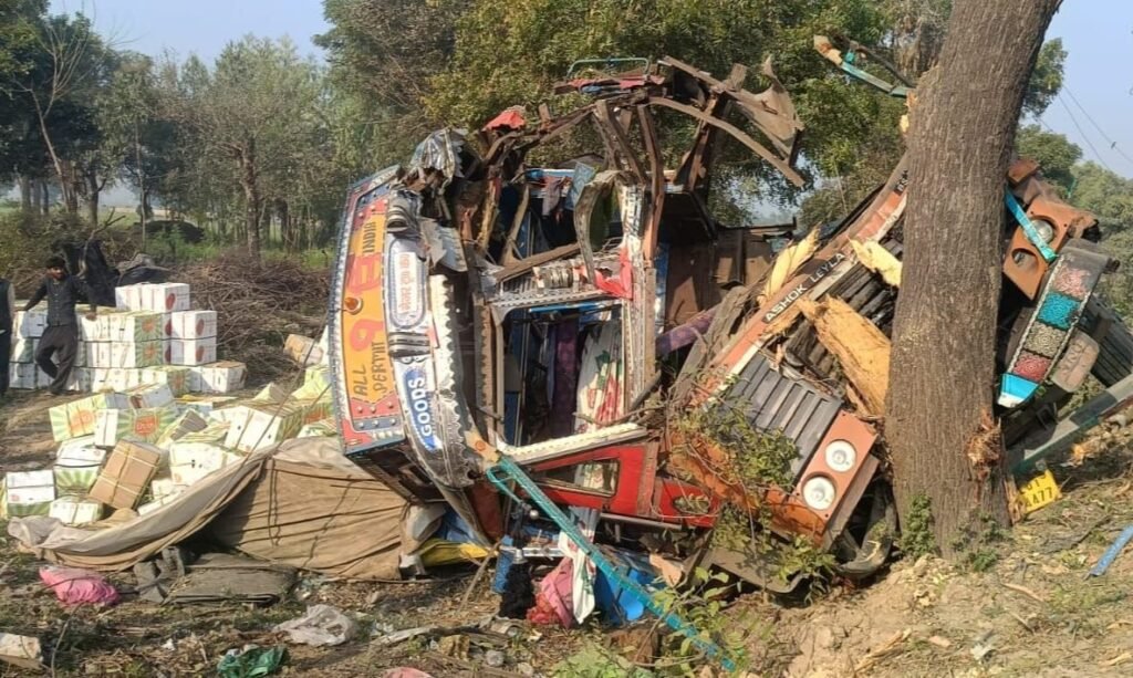 4.📰✍️ पेड़ से टकराकर पलटा सेब से भरा ट्रक, बाल-बाल बचे चालक और हेल्पर; शिकारपुर क्षेत्र में मेरठ-बदायूं हाईवे पर बांसोटी गांव के पास की घटना, गोवंशों को बचाने के प्रयास में अनियंत्रित होकर पेड़ से टकराया दिल्ली से असम जा रहा सेब से भरा ट्रक , ट्रक पूरी तरह क्षतिग्रस्त, सड़क पर बिखरे सेब के पैकेट, गनीमत रही कि चालक व हेल्पर रहे सुरक्षित।
