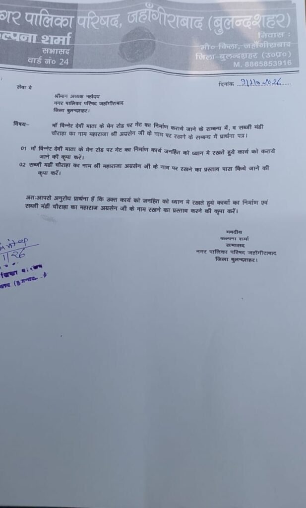 📰✍️ जहांगीराबाद का सब्जी मंडी चौराहा अब कहलाएगा श्री महाराजा अग्रसेन चौक; नगरपालिका जहांगीराबाद की बोर्ड बैठक में वार्ड-24 की सभासद कल्पना शर्मा का प्रस्ताव सर्वसम्मति से पास।