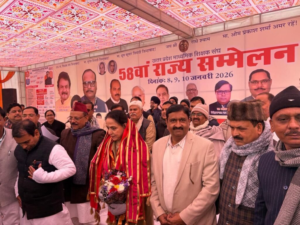 📰✍️मथुरा में किशोरी रमण इंटर कॉलेज में माध्यमिक शिक्षा संघ के 58वें दो दिवसीय सम्मेलन का भव्य शुभारंभ, सांसद हेमा मालिनी रहीं मुख्य अतिथि; सांसद हेमा मालिनी ने मां सरस्वती के समक्ष दीप प्रज्वलन एवं भगवान श्रीकृष्ण को माल्यार्पण कर किया कार्यक्रम का शुभारंभ।