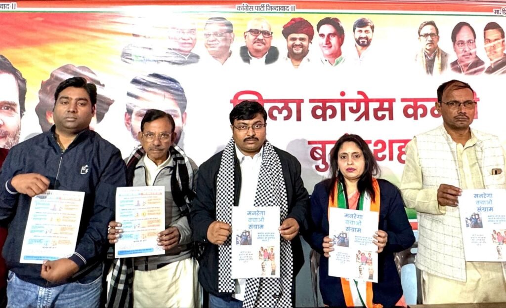 4.📰✍️ बुलंदशहर में कांग्रेस ने फूंका ‘मनरेगा बचाओ संग्राम’ का बिगुल, 45 दिन के आंदोलन का ऐलान; जिला कांग्रेस कार्यालय पर आयोजित प्रेस कॉन्फ्रेंस में जिलाध्यक्ष जियाउर्रहमान ने किया ऐलान, कहा ग्रामीण भारत की लाइफ लाइन है मनरेगा, 11 जनवरी को मलका पार्क स्थित गांधी मूर्ति पर एक दिवसीय उपवास से होगी अभियान की शुरुआत।