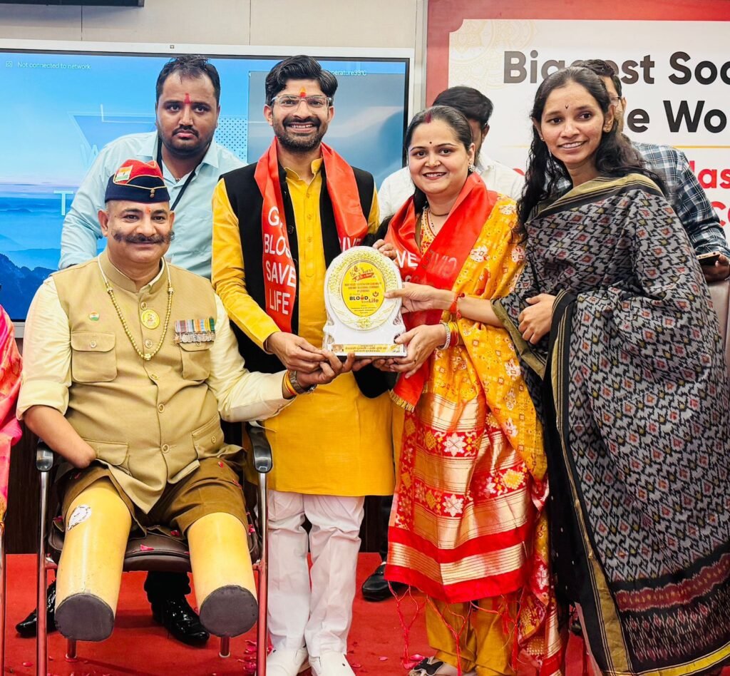 📰✍️ रक्तदान सेवा के लिए हैदराबाद में राष्ट्र चेतना मिशन सम्मानित, राष्ट्रीय सम्मेलन में मिला मंच; तेलंगाना की राजधानी हैदराबाद में आयोजित राष्ट्रीय सम्मेलन में नियमित रक्तदान सेवा के लिए राष्ट्र चेतना मिशन को मुख्य अतिथि वीर योद्धा लांसनायक दीपचंद व विशिष्ट अतिथि एबीवीपी प्रदेश मंत्री जानसी एक्का ने किया सम्मानित।