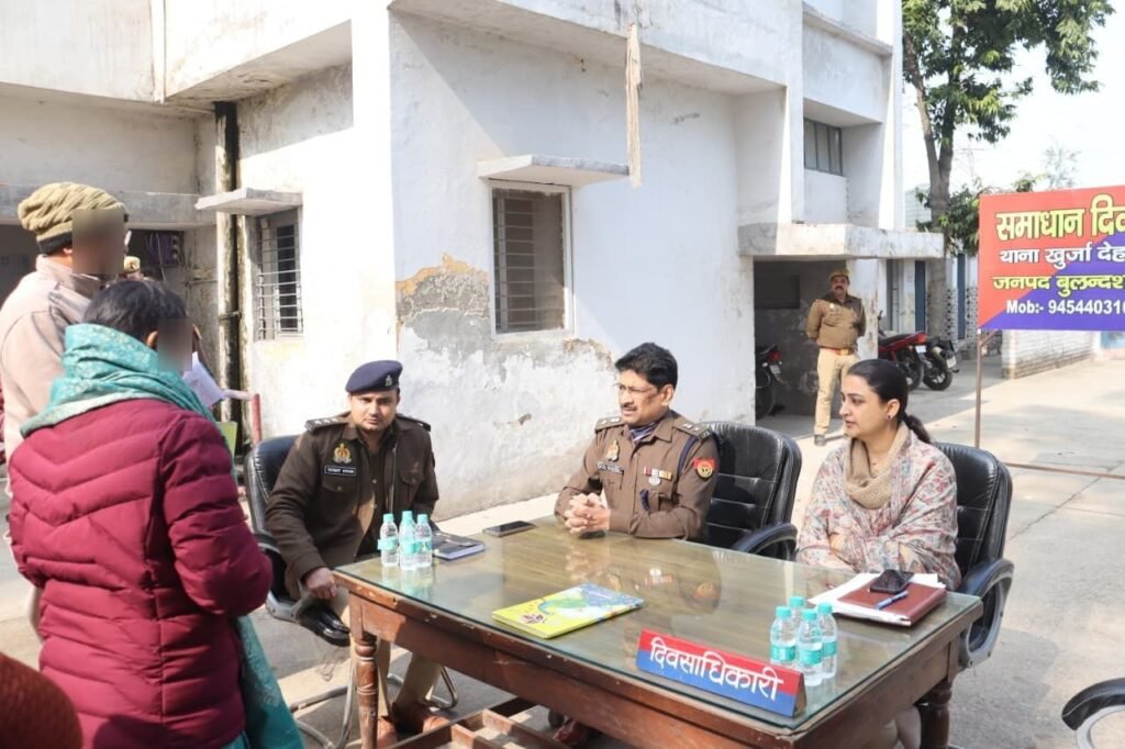 5.📰✍️थाना समाधान दिवस पर डीएम श्रुति व एसएसपी दिनेश कुमार सिंह ने खुर्जा देहात में सुनीं फरियादें; कई मामलों का मौके पर निस्तारण, शेष पर अधिकारियों को निर्देश, सीओ शोभित कुमार व थानाध्यक्ष मनोज कुमार रहे मौजूद।
