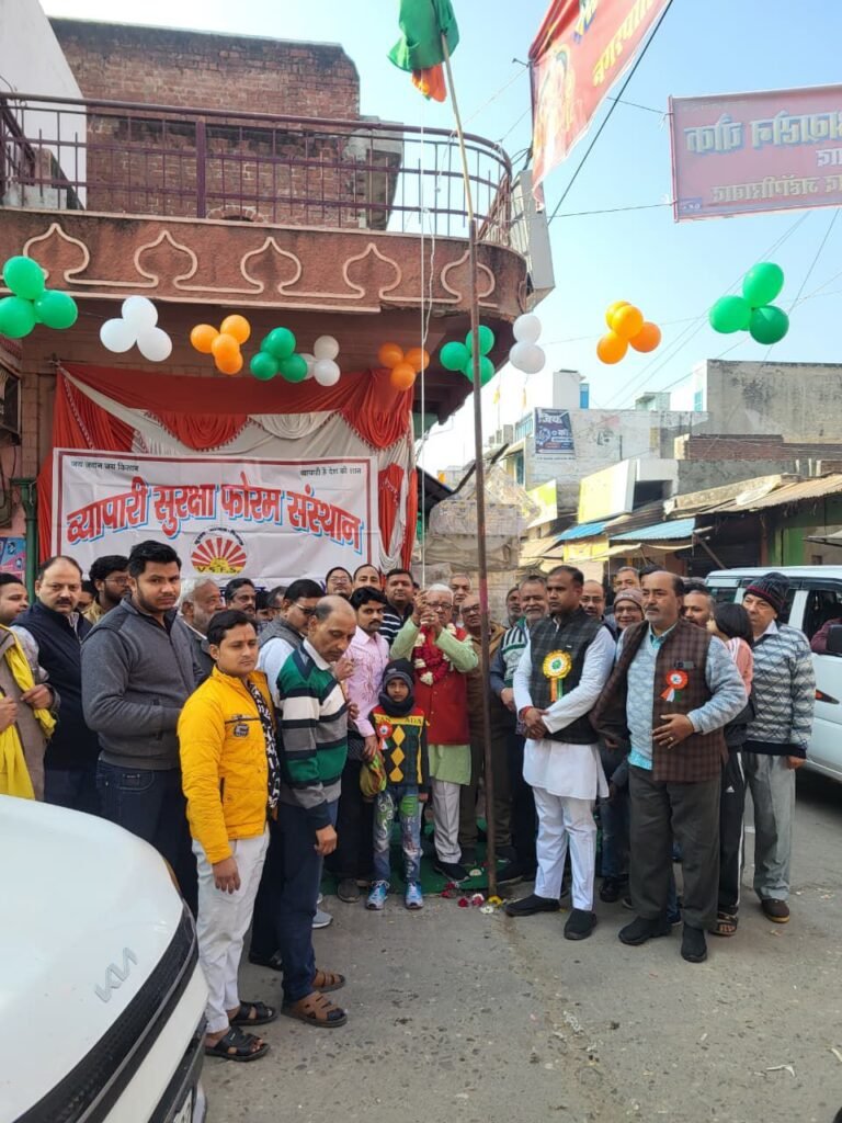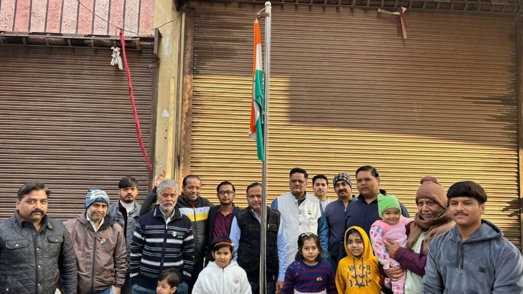 📰✍️व्यापारी सुरक्षा फोरम जहांगीराबाद ने अग्रसेन चौक पर फहराया तिरंगा; ध्वजारोहण कर गाया राष्ट्रगान, व्यापारियों ने एकता, संविधान और देशहित के संकल्प के साथ सम्पन्न किया आयोजन।
