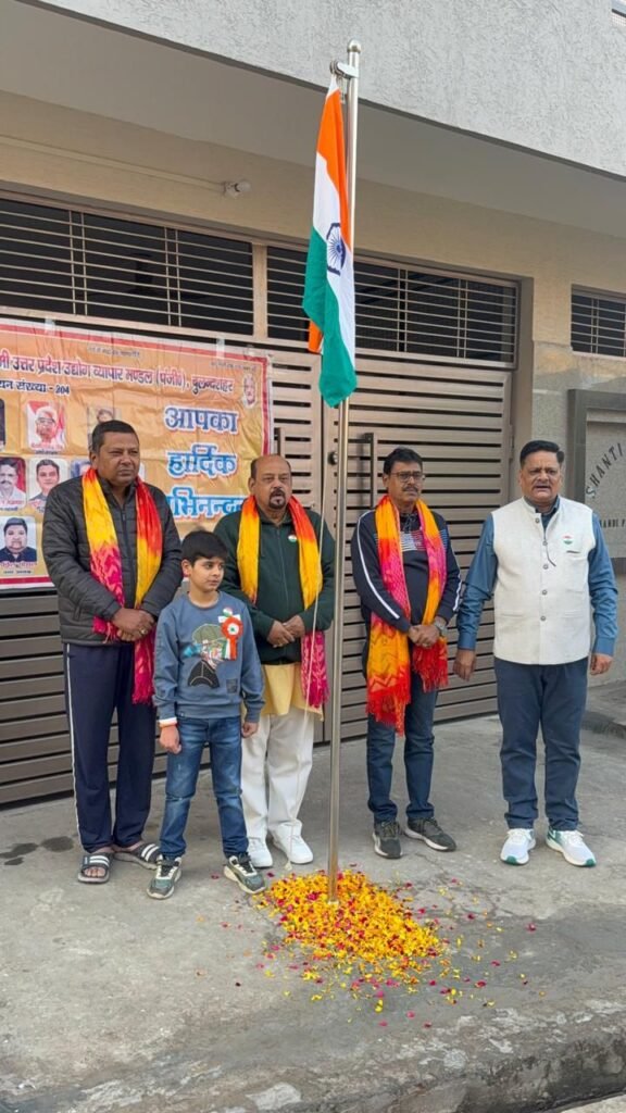 📰✍️पश्चिम यूपी उद्योग व्यापार मंडल ने जिला कोषाध्यक्ष अरुण गोयल के निवास पर फहराया तिरंगा; प्रदेश वरिष्ठ उपाध्यक्ष एसके सक्सेना व जिला अध्यक्ष नरेश गोयल ने किया ध्वजारोहण, पदाधिकारी व व्यापारी बड़ी संख्या में रहे उपस्थित।