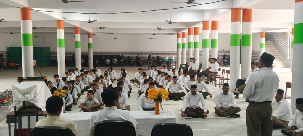 📰✍️खुरजा में संघ का वर्ष प्रतिपदा उत्सव, 12 बस्तियों में कार्यक्रम, निकला भव्य पथ संचलन; नगर में राष्ट्रीय स्वयंसेवक संघ शिवाजी बस्ती द्वारा आदर्श शिशु मंदिर में वर्ष प्रतिपदा उत्सव मनाया गया, 12 बस्तियों में 12 कार्यक्रम हुए, वक्ता राजकुमार ने हिन्दू नववर्ष का महत्व बताया, बाद में शहर में पथ संचलन निकाला गया जिसमें बड़ी संख्या में स्वयंसेवक शामिल रहे।