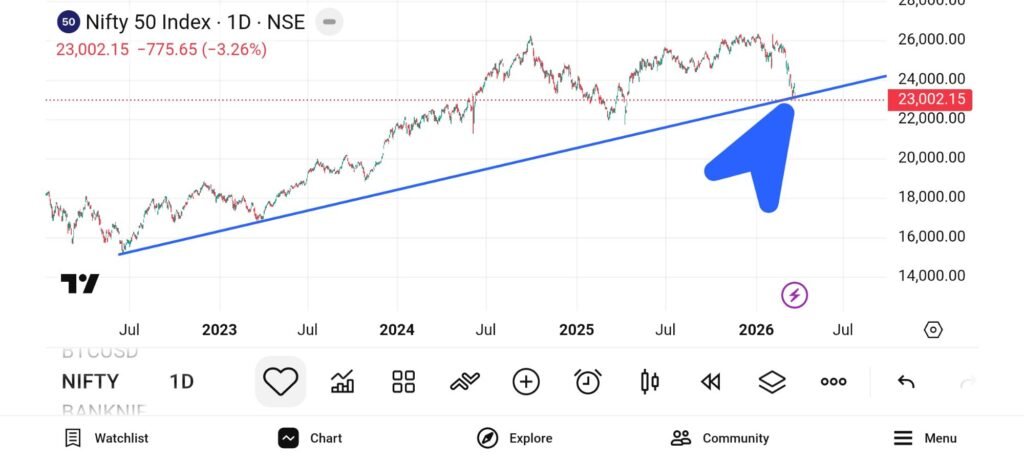 📰✍️ स्टॉक मार्केट में हाहाकार, आज गुरुवार को 3% से भी अधिक गिरकर बंद हुए मुख्य इंडेक्स निफ्टी, बैंक निफ्टी और सेंसेक्स, सोना-चांदी भी धड़ाम; आज निफ्टी ने पिछले 4 साल से डेली और वीकली चार्ट्स पर बनी ट्रेंडलाइन तोड़कर दी क्लोजिंग, टेक्निकल एक्सपर्ट बड़ी गिरावट का मान रहे हैं इसे सिग्नल, वहीं दूसरी तरफ आज एमसीएक्स पर सोना और चांदी में भी दर्ज की गई भारी गिरावट। आज निफ्टी ने 775 प्वाइंट, बैंक निफ्टी ने 1875 प्वाइंट और सेंसेक्स ने करीब 2500 पॉइंट पॉइंट गिरकर दी क्लोजिंग, भयंकर गिरावट के बाद निवेशकों के छूट रहे पसीने।