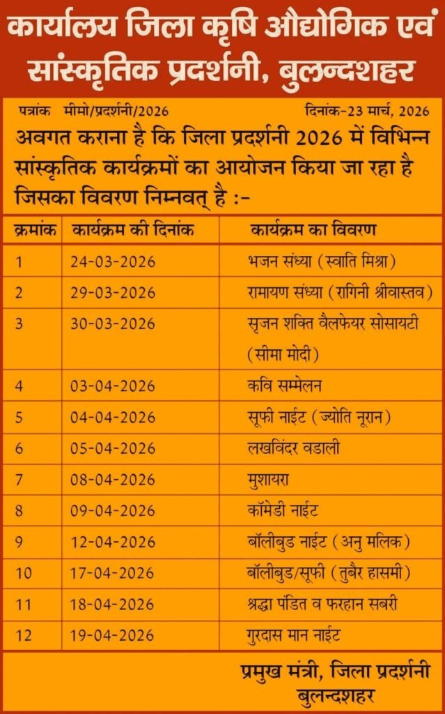जिला प्रदर्शनी में होने वाले कार्यक्रमों की सूची