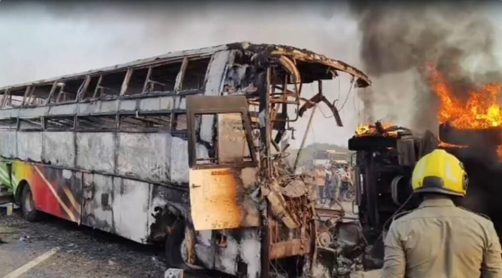 📰✍️आंध्र प्रदेश में भीषण हादसा; बस और टिप्पर की टक्कर के बाद लगी आग में जिंदा जले 13 यात्री, 12 घायल।