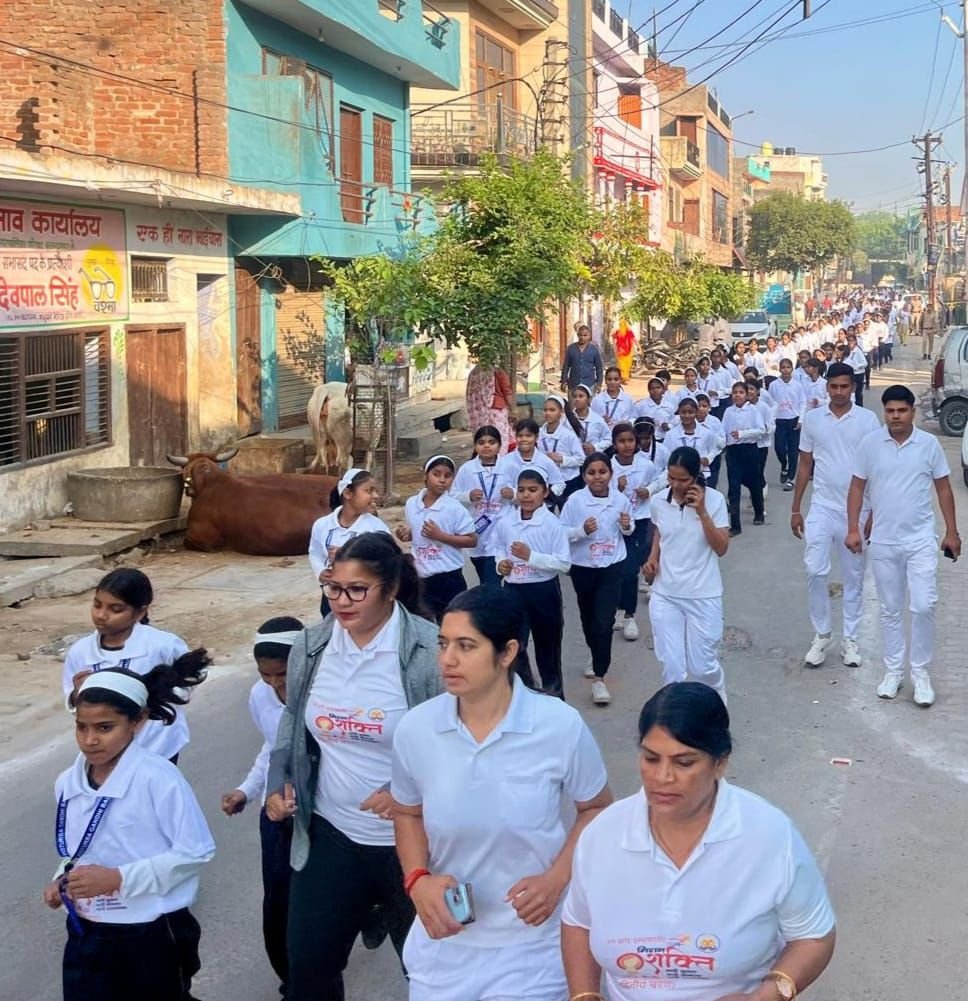 4.📰✍️महिला सशक्तिकरण के लिए बुलंदशहर में “रन फॉर एम्पावरमेंट” मैराथन, कस्तूरबा गांधी आवासीय विद्यालय की 300 छात्राएं व महिला पुलिसकर्मी हुईं शामिल; एसपी सिटी शंकर प्रसाद ने मैराथन को हरी झंडी दिखाकर किया रवाना, “नारी सुरक्षा – नारी सम्मान, बेटी बचाओ – बेटी पढ़ाओ” जैसे नारों से फैलाई गई जागरुकता, उत्कृष्ट प्रदर्शन करने वाली 3 छात्राओं व 1 महिला पुलिसकर्मी को किया गया सम्मानित। इस दौरान सीओ ट्रैफिक पूर्णिमा सिंह, प्रतिसार निरीक्षक अजय कुमार श्रीवास्तव, मिशन शक्ति प्रभारी सुनीता मलिक व महिला थाना प्रभारी स्वाति बालियान रहीं मौजूद।