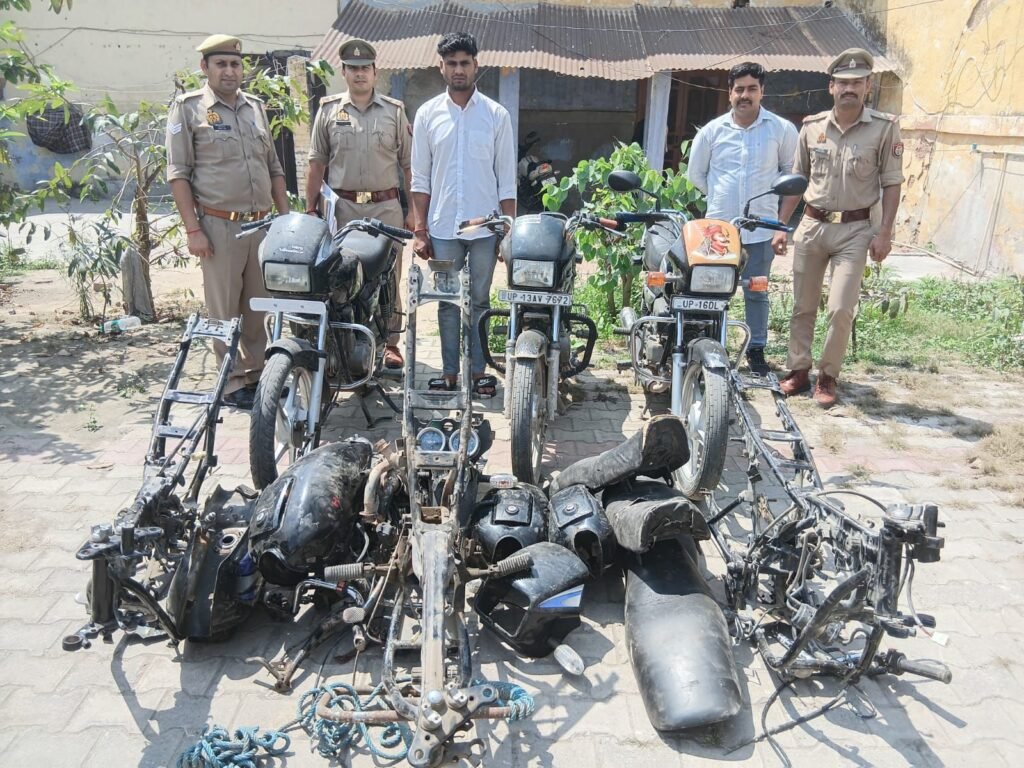 📰✍️सिकंदराबाद में वाहन चोर गिरोह का सरगना शमसुद्दीन गिरफ्तार, 3 बाइक व 4 चेसिस बरामद; चेकिंग अभियान के दौरान पुलिस ने दो नाबालिक साथियों के साथ दबोचा संभल निवासी शमसुद्दीन,आरोपी की निशानदेही पर बंद फैक्ट्री से 3 चोरी की बाइक व 4 चेसिस बरामद।