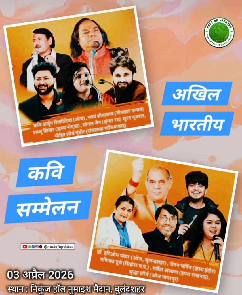 3.📰✍️ जिला प्रदर्शनी में 3 अप्रैल को लगेगा कवियों का महाकुंभ, निकुंज हाल में देशभर के दिग्गज करेंगे काव्य वर्षा; संयोजक अक्षय प्रताप सिंह के नेतृत्व में आयोजित होगा अखिल भारतीय कवि सम्मेलन, इस दौरान दिग्गज हरिओम पंवार, चेतन चर्चित, मर्णिका दुबे, चेतन अस्थाना, श्रद्धा शौर्य, अर्जुन शिशोदिया सहित कई नामी कवि देंगे अपनी प्रस्तुति।