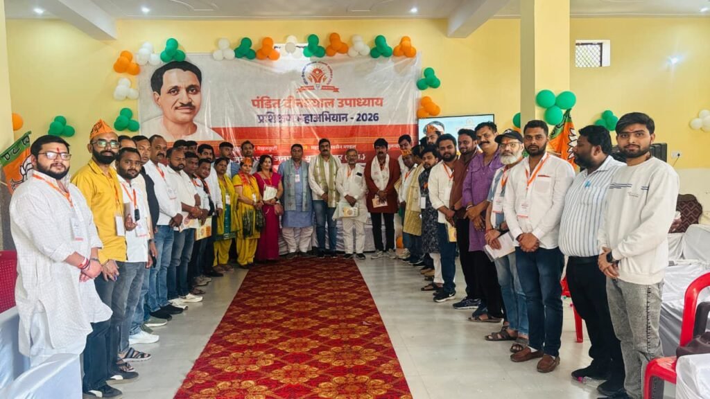 📰✍️बुलंदशहर में भाजपा का “पंडित दीनदयाल उपाध्याय प्रशिक्षण महाभियान-2026”, मोहनकुटी में दो दिवसीय प्रशिक्षण वर्ग संपन्न; मंडल अध्यक्ष बिल्लू पंडित के नेतृत्व में “पंडित दीनदयाल उपाध्याय प्रशिक्षण महाभियान-2026” के तहत 8 व 9 मार्च को दो दिवसीय प्रशिक्षण वर्ग आयोजित हुआ, जिसमें जिला उपाध्यक्ष दीपक ऋषि, कॉरप्रेटिव बैंक चेयरमैन डी.के. शर्मा, युवा मोर्चा जिलाध्यक्ष दिवाकर सिंह, भाजपा वरिष्ठ नेता जय प्रकाश शर्मा, जिला महामंत्री संतोष वाल्मीकि सहित कई वक्ताओं ने विचार रखे, कार्यक्रम में अनेक कार्यकर्ता मौजूद रहे।