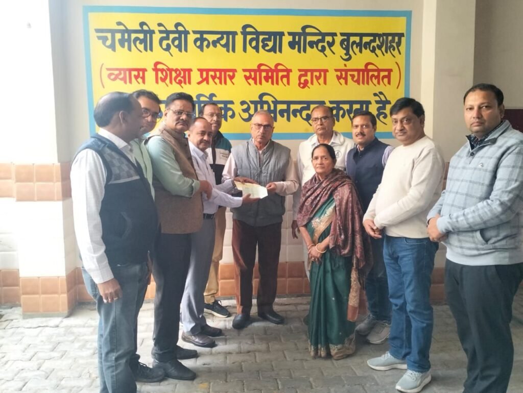 5.📰✍️धन के अभाव में शिक्षा से ना रहे कोई वंचित; रोटरी क्लब बुलंदशहर सिटी ने शहर के चमेली देवी विद्या मंदिर में पढ़ रहे निर्धन बच्चों की पढ़ाई के लिए स्कूल प्रबंधन को दिया 22600 का चेक।