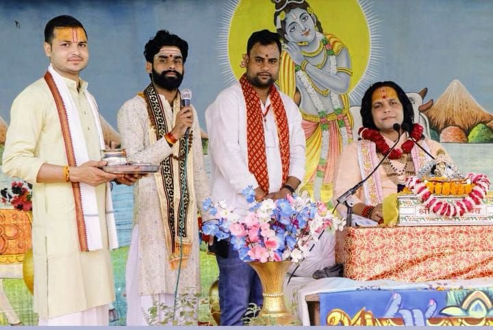 📰✍️औरंगाबाद के श्री नागेश्वर महादेव मंदिर के मैदान में हो रही साप्ताहिक श्रीमद् भागवत कथा का पांचवा दिन; कथा व्यास पंडित सोनेन्द्र कृष्ण शास्त्री ने भगवान कृष्ण के बचपन की लीलाओं की सुनाई कथा। इस मौके पर पंडित कृष्ण भारद्वाज, प्रीतम सिंह, डॉ प्रिंस शर्मा, मंदिर महन्त कुलदीप शास्त्री, आचार्य सक्षम भारद्वाज, शिवम् लाडला, दीपक यादव, शिवम् शर्मा, राहुल सैनी, व्यापारी नेता चेतन कंसल आदि श्रद्धालुओं ने व्यवस्था बनाए रखने में किया सहयोग।