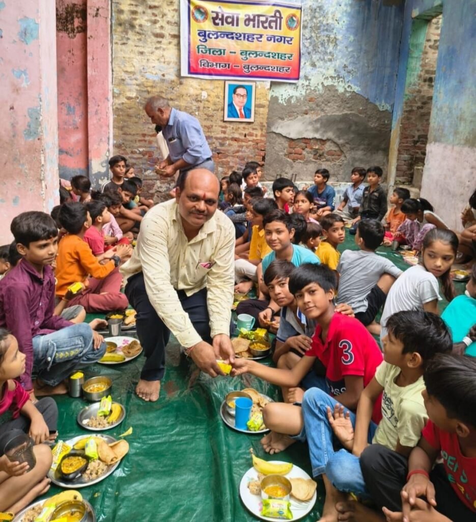 📰✍️महानवमी पर सेवा भारती बुलंदशहर नगर द्वारा टांडा बस्ती में कन्या लांगर पूजन का किया गया आयोजन; परंपरा अनुसार कन्याओं का पूजन कर उन्हें तिलक, आरती एवं भोजन कराया गया। कार्यक्रम में बड़ी संख्या में कन्याओं एवं बच्चों ने भाग लिया। इस अवसर पर गोपाल कृष्ण, अशोक शर्मा, जयप्रकाश गुप्ता, शोभा, अंकित, अरविन्द, विकास अग्रवाल, रितेश शर्मा, राजेश गर्ग, सुरेन्द्र गुप्ता आदि स्वयंसेवक उपस्थित रहे।